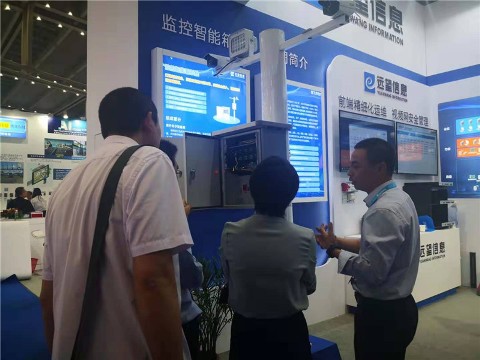 觀(guān)眾在監控智能箱展區前聽(tīng)取工作人員介紹