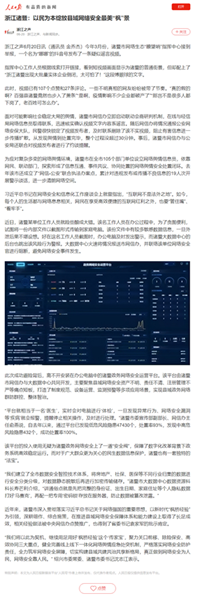 近段時(shí)間以來(lái),遠望信息為諸暨市構建的政務(wù)網(wǎng)絡(luò )安全防控體系頻繁受到媒體關(guān)注,新華社、人民日報、經(jīng)濟日報、浙江日報、浙江之聲等媒體紛紛點(diǎn)贊諸暨政務(wù)網(wǎng)絡(luò )安全——