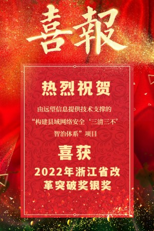 1月20日,中共浙江省委浙江全面深化改革委員會(huì )正式發(fā)布2022年浙江省改革突破獎名單,由遠望信息提供全體系數字化改革技術(shù)支撐的諸暨市“構建縣域網(wǎng)絡(luò )安全‘三清三不’智治體系”項目喜摘銀獎!